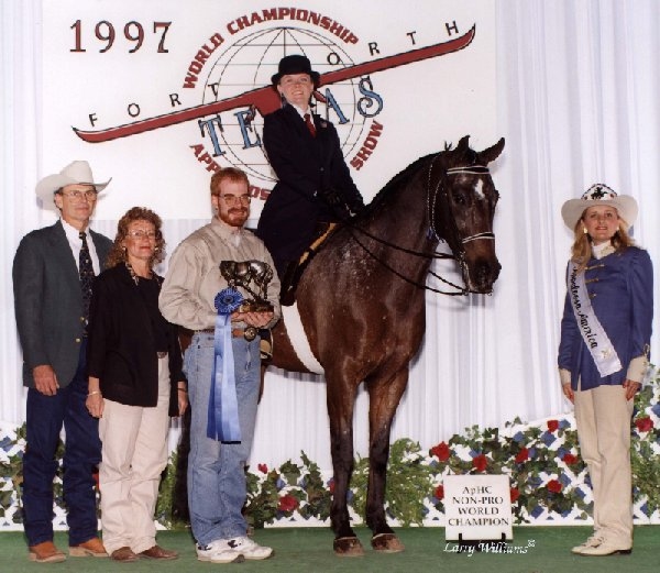 ![]() Dream at the 1997 World Championship Appaloosa Horse Show, with his trainers, my husband, and Miss Appaloosa America ![]() |