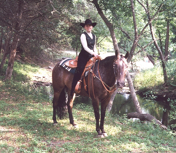 Dream is a 1986 bay roan gelding registered with the Appaloosa Horse Club (ApHC) as "A Dream Come True". I purchased Dream from a family friend while I was in college in hopes of having an all around prospect. Dream has more than lived up to my expectations! Dream was bred in West Virginia by Dr. John Godfrey. His sire was Baby Bar Patch. His "Appaloosa Roots" include two ApHC Hall of Fame members. He is a great-grandson of Apache and a great-great-grandson of Patchy. The thoroughbred Three Bars can also be found in this side of Dream's pedigree. Dream's dam was a Quarter Horse mare, Franza Bar, a double great granddaughter of the thoroughbred Three Bars. One of his distant relatives even won the Belmont Stakes !!! (Luke McLuke in 1914). Dream began his show career in Maryland at small, local shows. I began showing Dream in the larger, ApHC regional shows in 1989. Within a few years, we were showing up and down the east coast. In 1995, our jobs took us to Texas. Dream came along of course. I started showing in Texas the spring of 1996. I took the second half of that show season off so Dream and I could adjust to being Texans! In October of 1996, Dream and I started "serious" trail-riding with the Cowboy Capital Trail Riders, from Bandera, Texas. I met a lot of really nice people and look forward to going on other trail rides with this group in the future. I was really proud of how my "little show-pony" handled all the new experiences on the real trails. In November 1996, we went on the Cowboy Capitol Toys For Kids benefit ride. On this ride, Dream actually crossed running water for the first time! I was so proud! He didn't even hesitate to walk right into the stream. Now, in 2000, Dream has finished a great achievement - he earned his ApHC Supreme Champion Horse award! I'm so proud of my baby! Stay tuned here as Dream and I continue showing and other adventures! |